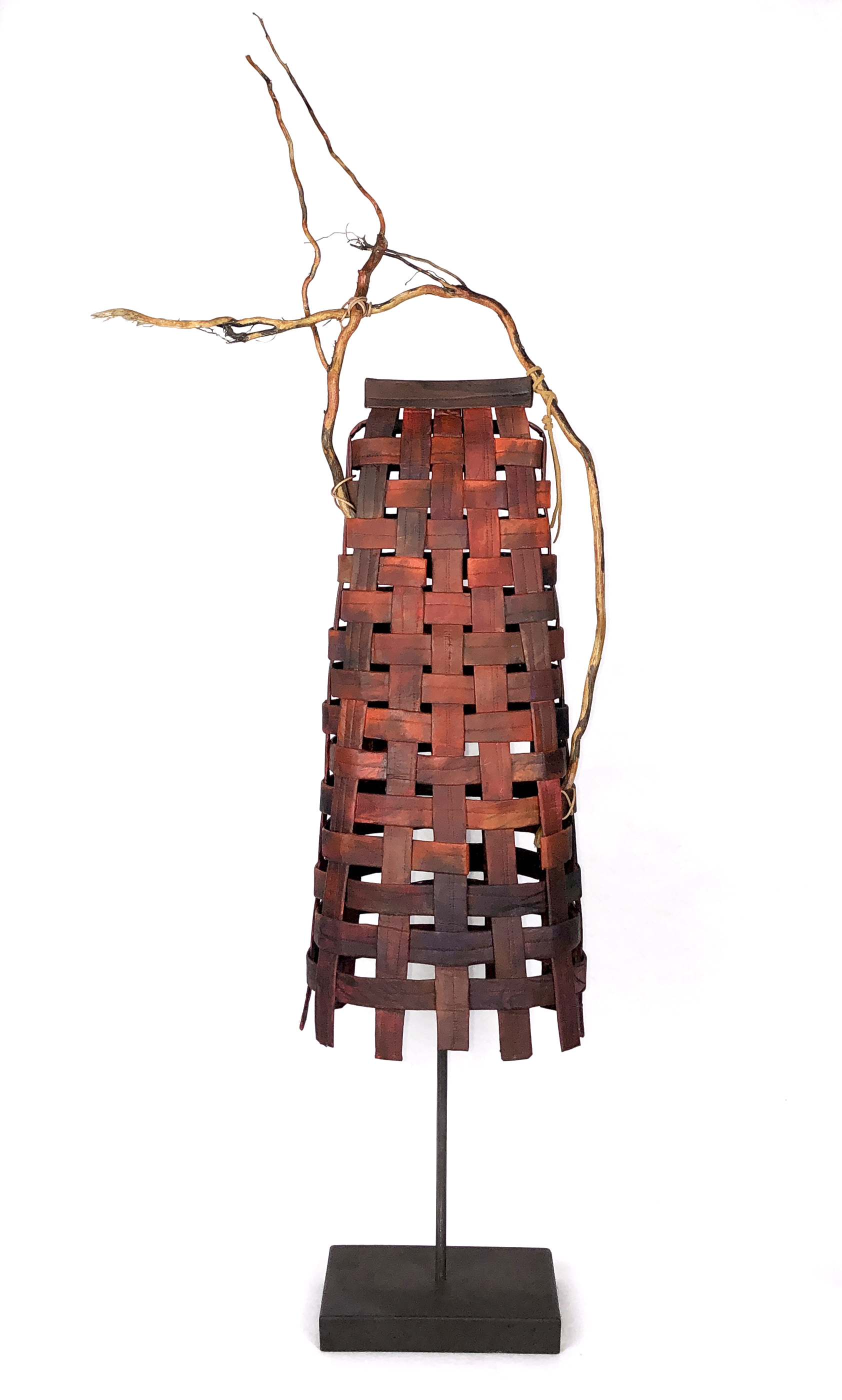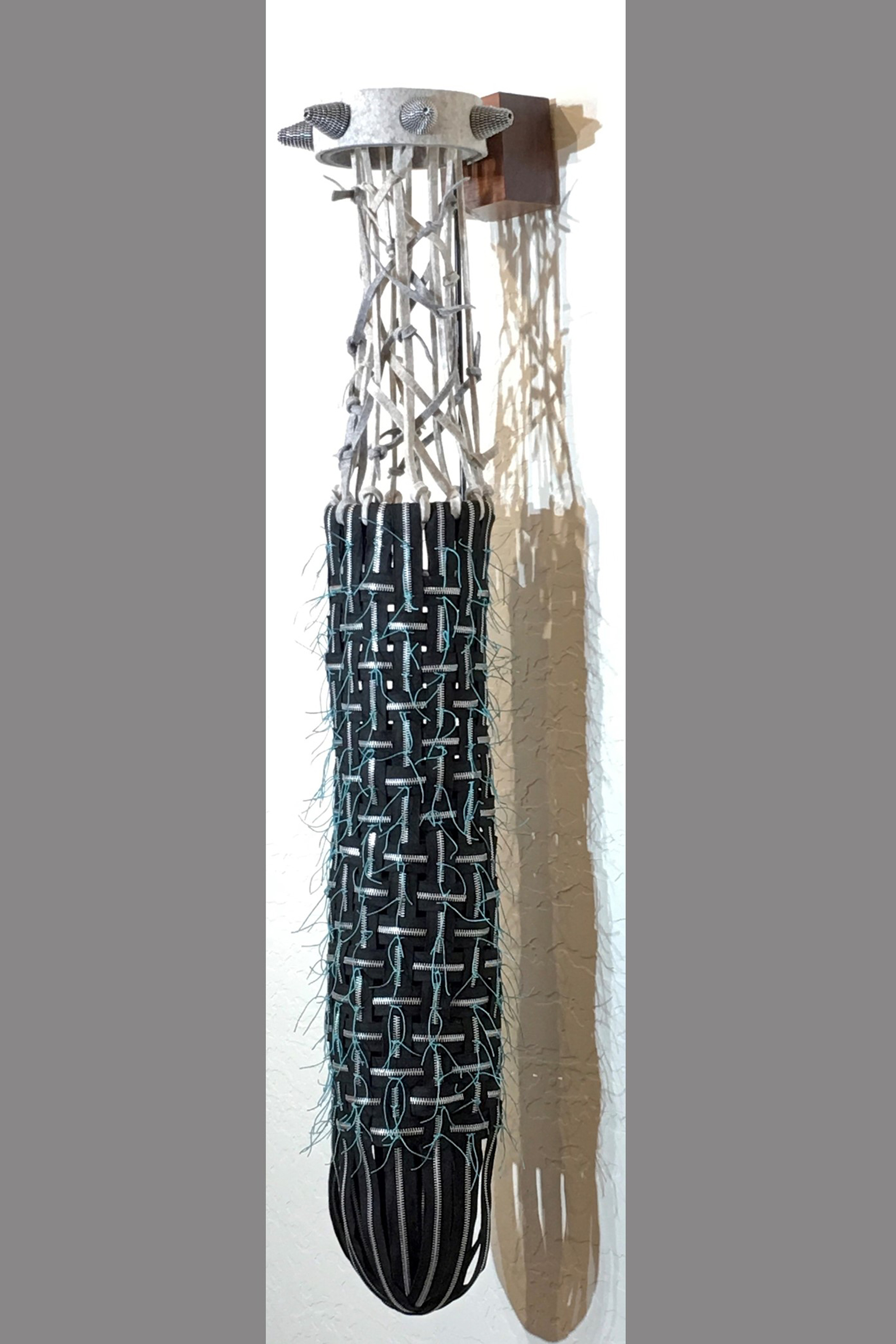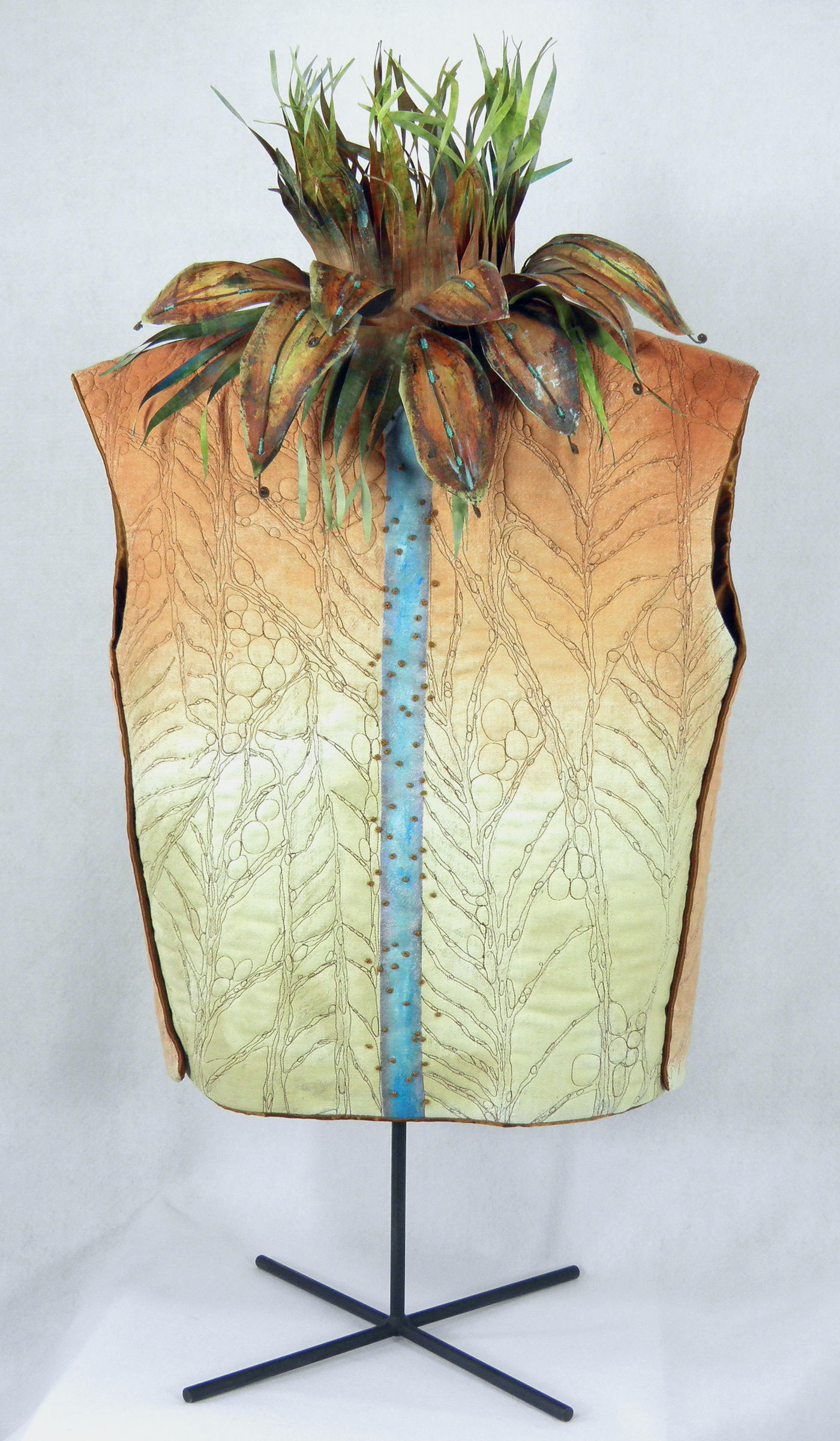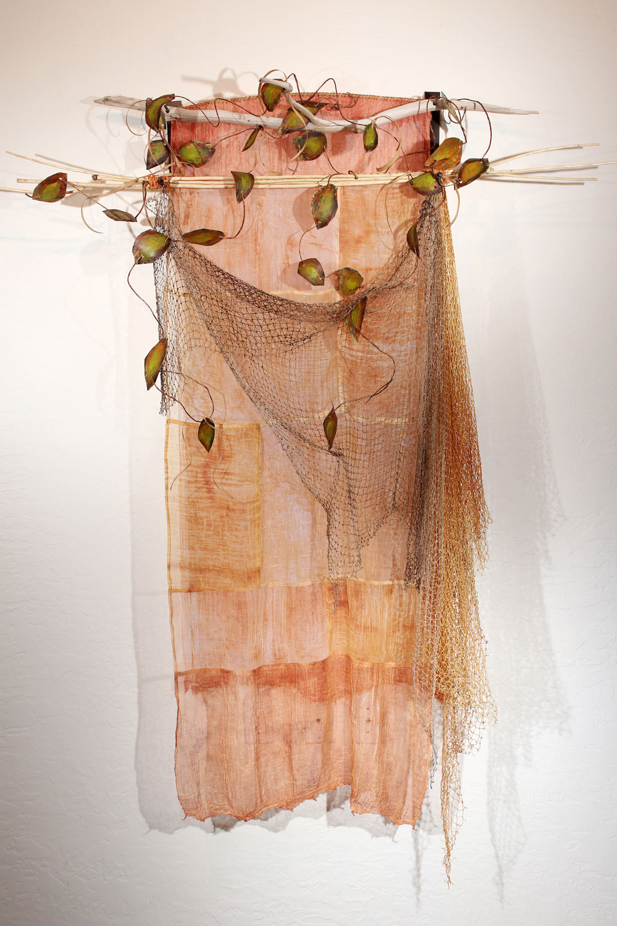 NEW MEXICO SUNSET…painted woven newspaper, quilted cotton, irrigation tubing, newspaper yarn…SOLD