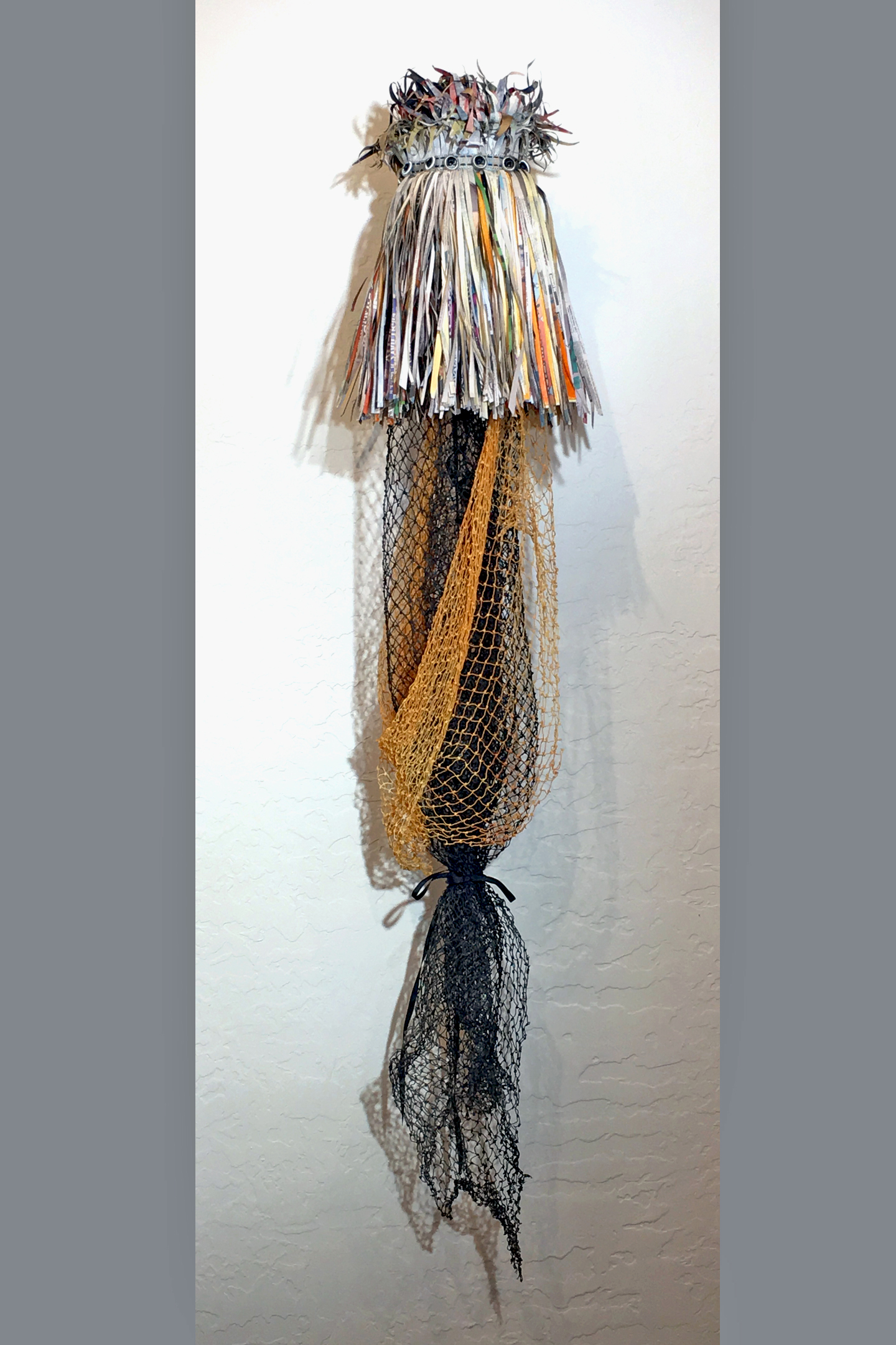 LUNAR ECLIPSE…painted cotton, newspaper, dyed netting…SOLD